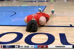 楊瀚森遭遇包夾被埃迪打到面部痛苦倒地 在地上躺了半天沒起來