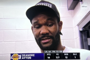 體育資訊12月8日訊 NBA常規(guī)賽,湖人在客場(chǎng)以112-108擊敗76人。賽后艾頓接受了采訪。