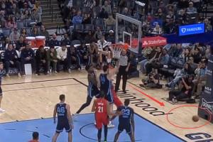 斯普利特直接進(jìn)場示意想要挑戰(zhàn),但灰熊突然發(fā)球直接到前場了