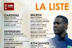 后衛(wèi):阿格巴杜(狼隊)、博利(諾丁漢森林)、奧斯曼·迪奧曼德(葡體)、蓋拉·杜埃(斯特拉斯堡)、吉斯萊因·科南(維森特)、科索努(亞特蘭大)、恩迪卡(羅馬)、奧佩里(伊斯坦布爾)、阿梅爾·佐瓦里(薩布塔洛)