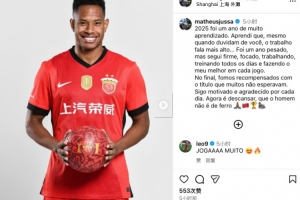 今日海港外援茹薩在社媒發(fā)文,對賽季表現(xiàn)進行總結(jié),他寫道: