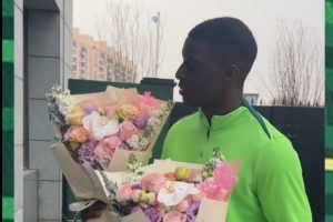 今天,法比奧特地找到訓(xùn)練基地負(fù)責(zé)洗衣的工作人員邵紅和陳玉敏,向兩位大姐獻花,感謝她們無微不至的照顧。??????