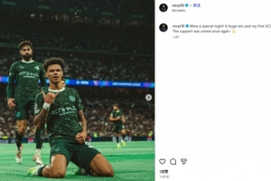 他也在賽后通過社媒曬出自己的滑跪慶祝照,并配文:“哇,真是個特別的夜晚!一場酣暢淋漓的勝利,還有我的歐冠首球!球迷們的支持再次令人感到難以置信??”