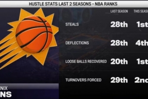 太陽搶斷本賽季聯(lián)盟第1&上賽季第28 活球爭搶本季第1&上賽季第20