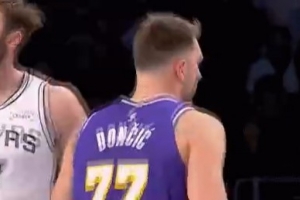 半場戰(zhàn)報-湖人落后馬刺12分 東契奇24分 詹姆斯12+8 凱爾登13+6