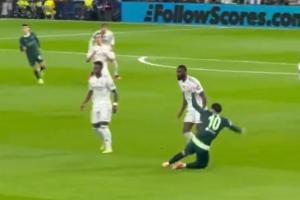 在一次攻防轉(zhuǎn)換回合中,謝爾基拿球先是晃過了巴爾韋德的鏟搶,隨后將球分出,然而回防的呂迪格一把將其撞倒在地,謝爾基躺在地上攤手一臉困惑。