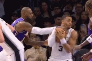 疼??!詹姆斯上籃不中回身切球打到凱爾登右臉!后者痛苦倒地!