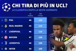 體育資訊12月11日訊 德國(guó)轉(zhuǎn)會(huì)市場(chǎng)統(tǒng)計(jì)了本賽季歐冠各隊(duì)的射門(mén)次數(shù),并列出榜單,巴黎120次射門(mén)居首,皇馬、利物浦二三位。