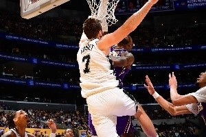 體育資訊12月11日訊 今日NBA杯1/4決賽,湖人主場不敵馬刺。次節(jié)行將結(jié)束之際,湖人進攻回合,詹姆斯持球沖到籃下,面對馬刺中鋒科內(nèi)特,直接起跳完成單臂炸裂隔扣。