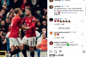 曼聯(lián)后防鐵閘!德里赫特:50次出場,拿下3分,感謝所有支持!