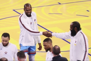杜蘭特在Instagram快拍中用一個(gè)詞慶祝了哈登的成就:“傳奇”。