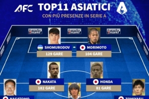 意甲出場最多的亞洲球員11人陣: