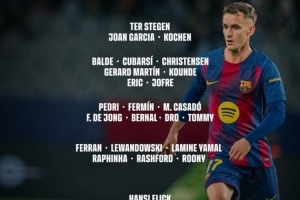 前鋒:費(fèi)蘭·托雷斯、萊萬、亞馬爾、拉菲尼亞、拉什福德、魯尼·巴德吉