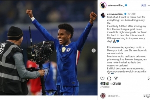 埃斯特旺社媒曬出慶祝的照片,配文:“首先,我要感謝上帝在我生命中所做的一切。在與球迷共度的非凡之夜攻入個人英超首球之后,我感到無比滿足!