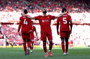 體育資訊12月14日訊 英超第16輪比賽,利物浦在主場迎戰(zhàn)布萊頓。本場比賽,薩拉赫角球助攻埃基蒂克打進球隊第2球。