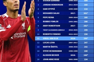 體育資訊12月14日訊 英超第16輪,利物浦在安菲爾德以2-0的比分戰(zhàn)勝布萊頓。本場比賽,紅軍隊(duì)長范戴克迎來代表球隊(duì)的第150場英超出場,這讓他足以位居隊(duì)史第11位。