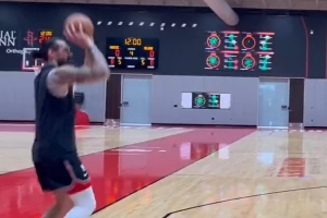 空間型5號位練成中!亞當(dāng)斯訓(xùn)練44秒內(nèi)底角三分12中10!