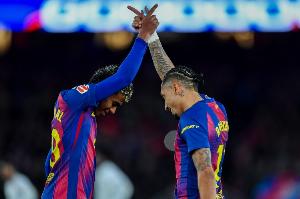 體育資訊12月14日訊 西甲第16輪,巴薩2-0奧薩蘇納,本場拉菲尼亞梅開二度包攬球隊的全部進球,還打入一粒精彩遠射。
