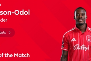 2球1助攻,官方:藍(lán)軍舊將奧多伊當(dāng)選諾丁漢森林3-0熱刺全場最佳
