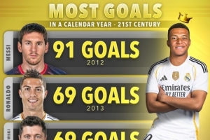 體育資訊12月15日訊 西甲第16輪比賽,姆巴佩破門,皇馬客場2-1擊敗阿拉維斯。據(jù)Score90統(tǒng)計,姆巴佩2025年打進(jìn)63球,排名本世紀(jì)自然年進(jìn)球榜第四位。