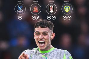 近4輪英超,福登一掃頹勢(shì)展現(xiàn)炸裂狀態(tài),4輪6球1助仿佛重回23/24賽季那個(gè)無所不能的“太子登”。