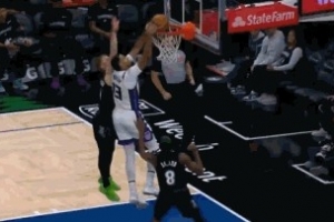 偏向虎山行!基根·穆雷接威少長傳迎著兩人防守暴扣得分