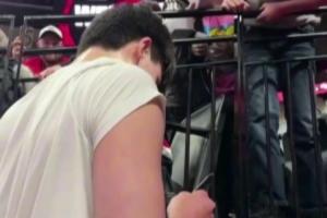 小球迷這個(gè)興奮喲!楊瀚森賽前給小男孩簽名 對(duì)方驚喜大呼哦買噶~