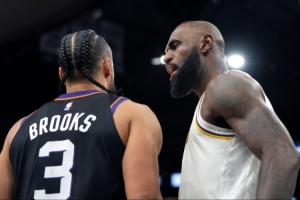 在迄今為止最瘋狂的沖突中,勒布朗·詹姆斯和狄龍·布魯克斯發(fā)生了爭執(zhí),領(lǐng)到技術(shù)犯規(guī),布魯克斯還被驅(qū)逐出場。