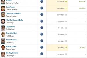 2、若昂·內(nèi)維斯(巴黎) 1.1億(+2000萬)