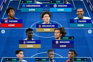 中場:馬利克·福法納(里昂,3000萬)、拉米涅·卡馬拉(摩納哥,3000萬)、阿克利烏舍(摩納哥,4500萬)、布阿迪(里爾,4000萬)、伊戈爾·派尚(馬賽,3500萬)