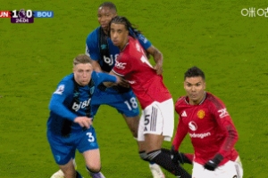 體育資訊12月16日訊 英超第16輪,曼聯(lián)主場迎戰(zhàn)伯恩茅斯,比賽第25分鐘,曼聯(lián)角球機會斯科特與卡塞米羅爭頂疑似手球,裁判沒有判罰。