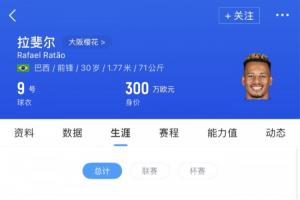 拉唐現(xiàn)年30歲,上賽季租借效力于大阪櫻花,出場44次打入23球4助攻,目前他的德轉(zhuǎn)身價(jià)是300萬歐元。
