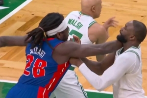 火氣十足!斯圖爾特和杰倫·布朗卡位互相推搡 雙方皆吃T!