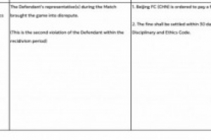 亞足聯(lián)官方表示,國(guó)安的行為損害比賽聲譽(yù),違反亞足聯(lián)紀(jì)律和道德準(zhǔn)則第50.1條,這是國(guó)安第二次違規(guī),對(duì)國(guó)安處以6250美元罰款,罰款應(yīng)自本決定送達(dá)之日起30日內(nèi)支付。