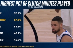 和誰(shuí)都五五開(kāi)!本季關(guān)鍵時(shí)刻占比榜:76人第1 獨(dú)行俠第2 火箭第5