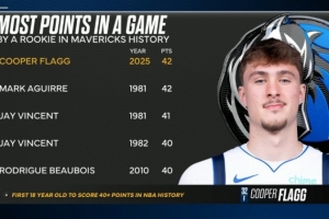 獨(dú)行俠隊(duì)史新秀單場(chǎng)得分榜:弗拉格42分并列第一 4人砍下過(guò)40+