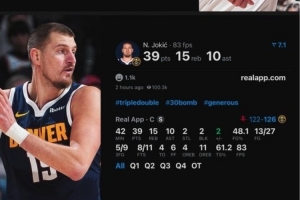 據(jù)數(shù)據(jù)媒體Real Sports統(tǒng)計(jì),這是歷史上首次出現(xiàn)中鋒對決同場砍下30+三雙。