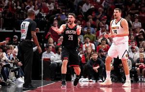 全場比賽,約基奇出戰(zhàn)42分鐘,得到39分15籃板10助攻2搶斷2封蓋;申京出場42分鐘,得到33分10籃板10助攻2搶斷1蓋帽。