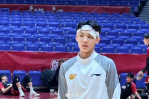 賽前,廣東體育頻道記者關(guān)辛發(fā)博曬照,廣東后衛(wèi)徐杰戴著發(fā)帶在賽前進(jìn)行熱身。