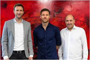 圖左至右:勒沃庫森總監(jiān)羅爾費斯,阿隆索,CEO卡羅