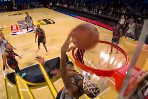 哈特只能一樓觀看!文班擋拆順下 二樓接瓦塞爾高拋空接背扣砸進(jìn)