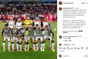 弗拉門戈中場若日尼奧社媒曬出首發(fā)球員的合照,配文:“我們奮力拼搏,傾盡全力,雖然帶著些許遺憾踏上歸途,但仍對迄今取得的成就感到無比自豪?!?/p>