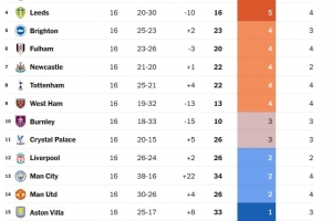 TA盤點(diǎn)了英超烏龍球另類積分榜,回顧了上賽季以來各隊(duì)產(chǎn)生的烏龍球情況(包括對(duì)手打進(jìn)的烏龍球)。因此,桑德蘭、伯恩利和利茲聯(lián)的數(shù)據(jù)來自上賽季的英冠聯(lián)賽。