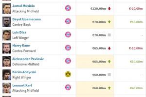 體育資訊12月19日訊 今日德轉(zhuǎn)更新德甲身價(jià)。