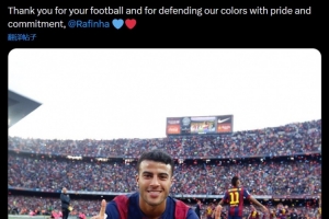 巴薩官方寫(xiě)道:“感謝你帶來(lái)的足球,以及感謝你以驕傲和責(zé)任心捍衛(wèi)我們的顏色,拉菲尼亞????”