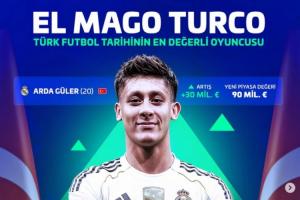 而居萊爾也是第一個達到9000萬歐元身價的土耳其球員,本賽季這位20歲的皇馬中場出戰(zhàn)25次,貢獻3球7助。