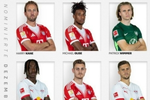 德甲官方12月最佳球員候選:凱恩領(lǐng)銜,奧利塞、斯坦尼西奇在列