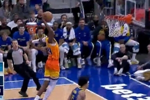 這什么神仙球!米切爾搶斷反擊被古德溫拉住 身體失衡還能上籃2+1
