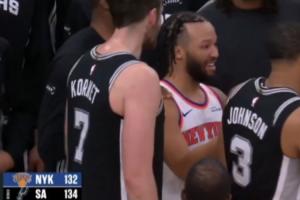 體育資訊01月01日訊 在今日尼克斯不敵馬刺的最后時刻,尼克斯落后5分,布倫森投進了一個超高難度的壓哨三分球,最終憾負2分。