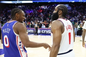 “但我看很多哈登的比賽,那很瘋狂,我還和他當(dāng)過隊友,有一段時間他的比賽讓你難以置信,我們都在學(xué)他的后撤步。我也看很多艾弗森的比賽,艾弗森和韋德,那是我最喜歡的球員,但是費城的3號不能穿了。”